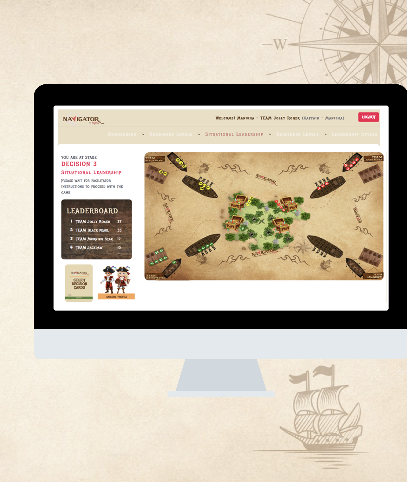 Story Board: You are leading an expedition to a treasure island. Your team is composed of 12 Sailors with different behavior profiles and different engagement and readiness levels. Your mission is to reach the treasure island with as many Sailors as possible still onboard. Your leadership decisions will be crucial to make this journey successful. You will have the support of your team and a dedicated facilitator.